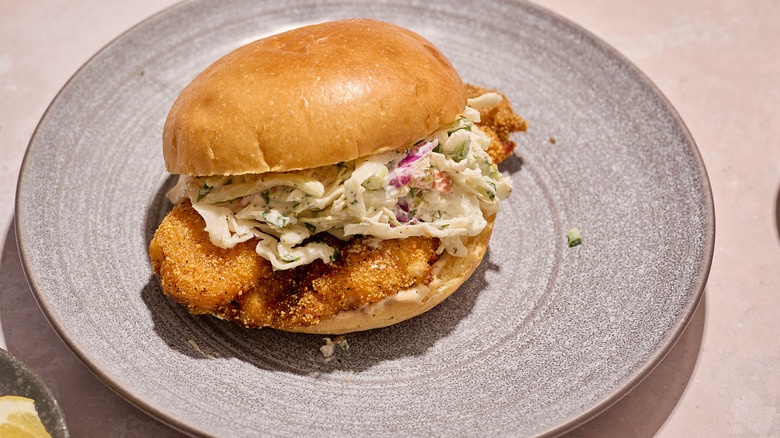 - To build the sandwiches, add catfish, coleslaw, and remoulade to the brioche buns and serve.