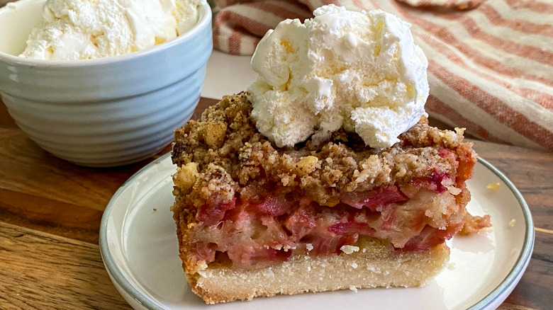 To make this recipe, you'll of course need some rhubarb. "Even in spring when rhubarb is in season, it's a pretty short window so if you miss it, feel free to use frozen rhubarb in this recipe," Hahn explains. You'll need about 4 cups of frozen rhubarb and no need to cook it, just let it thaw on the counter for at least 30 minutes.