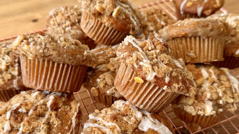 Divide the batter evenly between muffin liners and top with the streusel. Bake the muffins for 28 to 30 minutes, or until they are golden brown and spring back when touched. Transfer the muffins to a wire rack to cool.