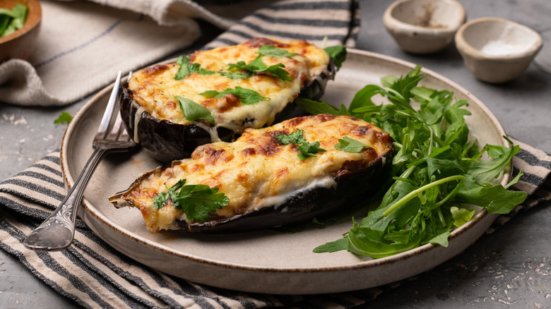 Whether you can't find a certain ingredient in the supermarket or you simply have other dietary preferences, this recipe for ground turkey-stuffed eggplant can easily be adapted to suit your needs. To make this dish gluten-free, simple swap out the flour in the béchamel sauce for a gluten-free variety. And, to adapt this recipe for dairy-free diners, you will again want to adapt the béchamel sauce by substituting the butter and milk for lactose-free varieties. Similarly, you will want to either substitute the cheddar for a dairy-free cheese or omit it entirely from the dish. Breadcrumbs makes a great alternative topping to give the eggplants some crunch.