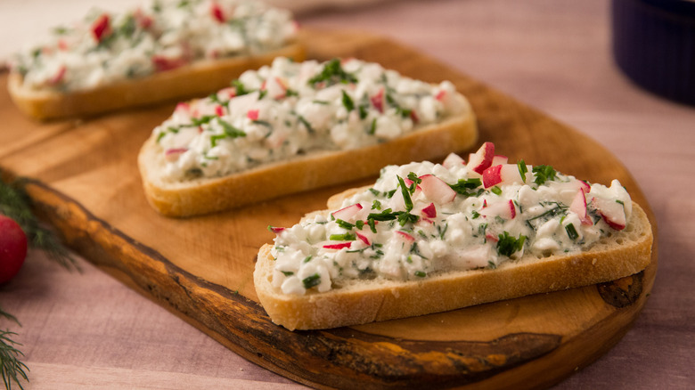 Twaróg or other farmer's cheeses may be hard to find, so recipe developer Michelle Bottalico has created a recipe for gzik that uses store-bought cottage cheese mixed with Greek yogurt to achieve the same, creamy result. Since twaróg is basically a dry cottage cheese, this recipe is similar to the original. Radishes, chives, and dill are mixed into the cheese to add a slightly spicy flavor, fresh herby notes, and a little crunch, all of which complement the mild cheese. Gzik is traditionally served over baked potatoes or for breakfast on buttered rye bread. Cottage cheese is a popular choice for nutrient-rich diets, so this could be a great new way to start your day. If you're anything like us, you just may fall in love with this delightful, easy-to-make recipe.