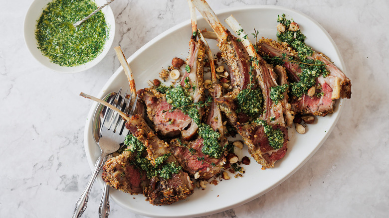 Lamb chops are a classic dish that can be found on menus worldwide, but we take it to a whole other level of flavor in this recipe thanks to a unique hazelnut crust and minty pesto. Mint and lamb are both quintessential springtime ingredients, and their pairing has been enjoyed for centuries in various cultures across the world, according to Ksenia Prints of At the Immigrant's Table. This recipe takes cues from Persian cuisine by combining the rich nuttiness of hazelnuts and the bright, herbaceous notes of mint and parsley with tender, juicy lamb with to comprise one delicious meal.