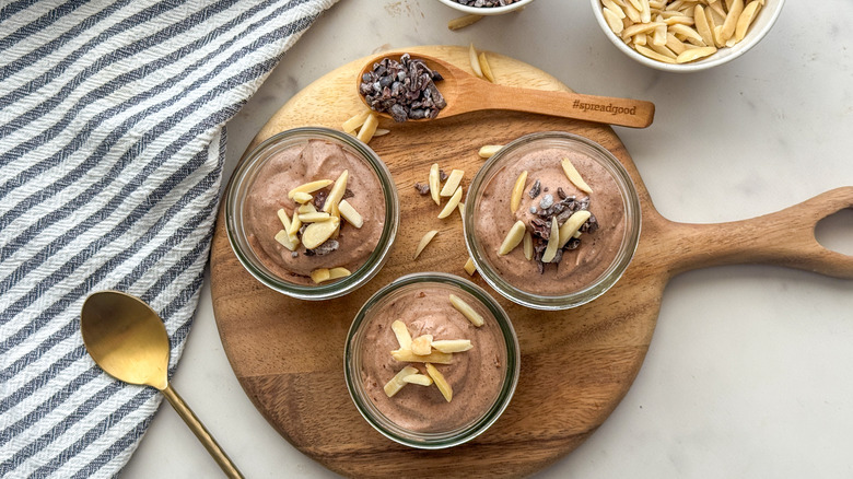 The mousse is ready to serve as is, or topped with optional nuts and cacao nibs as desired.