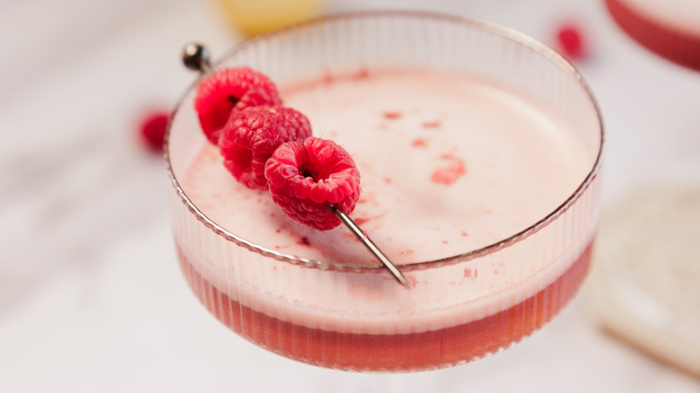 According to Ksenia Prints of At the Immigrant's Table, a Scotch sour is often perceived as a vintage, acidic, and masculine drink that tastes of peated whiskey and cigar smoke. But this drink can become so much more unique and flavorful with the addition of raspberry preserves, a raspberry liqueur, and a few luxurious garnishes. Because who doesn't want to feel like a starlet of the silver screen for a night?
