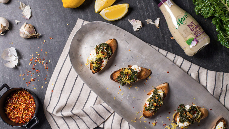 Crostini look and sound fancy but are a breeze to put together—that's why they're so great for parties. This version, with sautéed chard drizzled with Marie's White Balsamic Shallot Vinaigrette, will add a sumptuous, savory boost to burrata-topped toasts. Crack open a bottle of wine, and you'll be ready to fete in style.