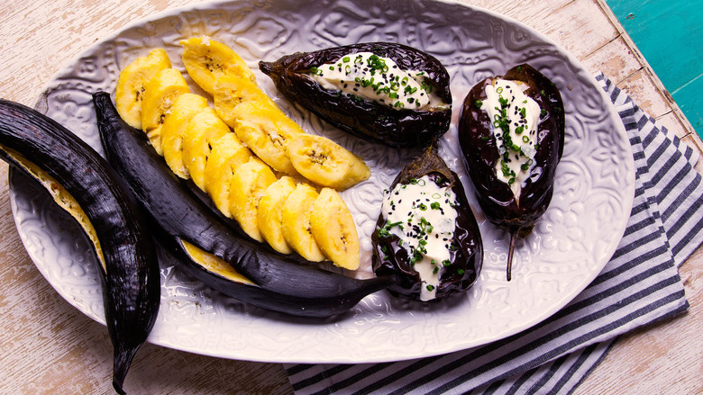 Chef Jose Enrique throws the sweet plantains that are essential to any Puerto Rican meal on the grill with smoky eggplants to delicious results: Once grilled, the eggplants are treated like baked potatoes, filled with crème fraîche and chives, while the charred plantains are served alongside. It's a unique combo for your next cookout.