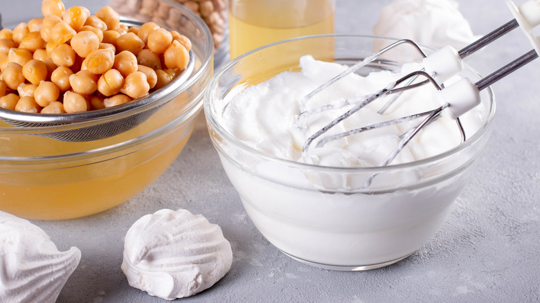 So how does it work? According to Serious Eats, the chemical makeup of the cooking liquids of chickpeas and other legumes makes them really good both at foaming and being able to retain that peaked structure. Chickpea foam is particularly stable among legumes, which, along with its mild and adaptable flavor, has made it a favorite among bakers. Better yet, there's one ingredient you can add to aquafaba to make it even more stable, producing a longer-lasting foam that, in turn, makes better baked goods.