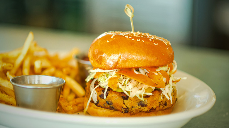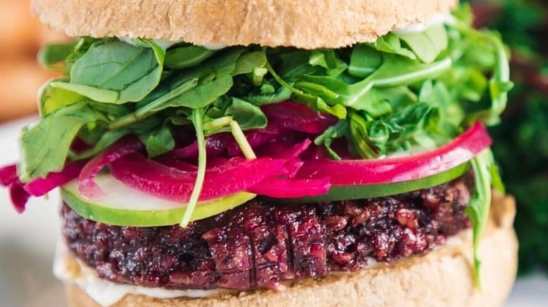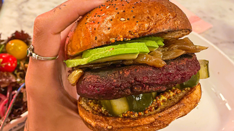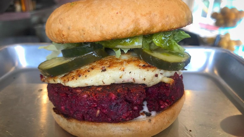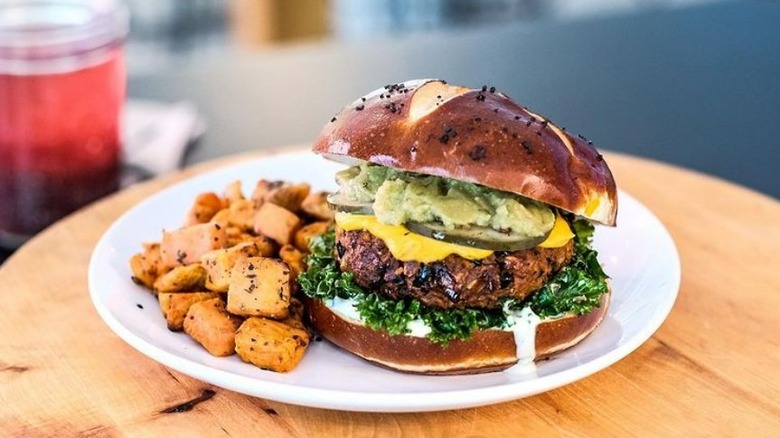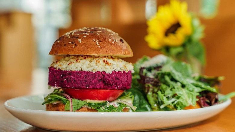 In a city like Portland, Oregon, where vegetarian and vegan food is a prominent part of the foodie landscape (per Travel Portland), quality veggie burgers are a dime a dozen, so it takes a singular version to stand out — like the beet-based beauty served at Flourish Plant-Based Kitchen, where all menu items are made from scratch using entirely vegan ingredients to recreate familiar comfort fare.