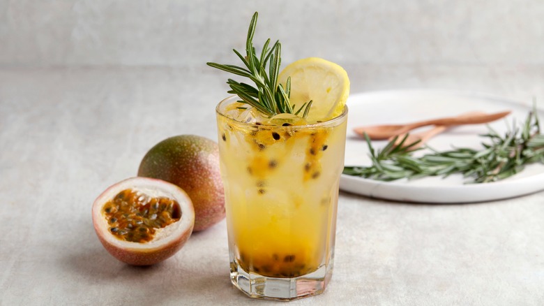 According to Masterclass, the two kinds of passion fruit — yellow and purple — differ in more ways than aesthetics. The golden passion fruit can grow to be as large as a grapefruit and has a noticeably tart flavor. The purple passion fruit becomes wrinkly when ripe and is less acidic. Both fruits can be used to make passion fruit puree for bakes, be juiced to use in cocktails, or boiled to make jam. Which type of fruit you choose should depend on your flavor preferences.