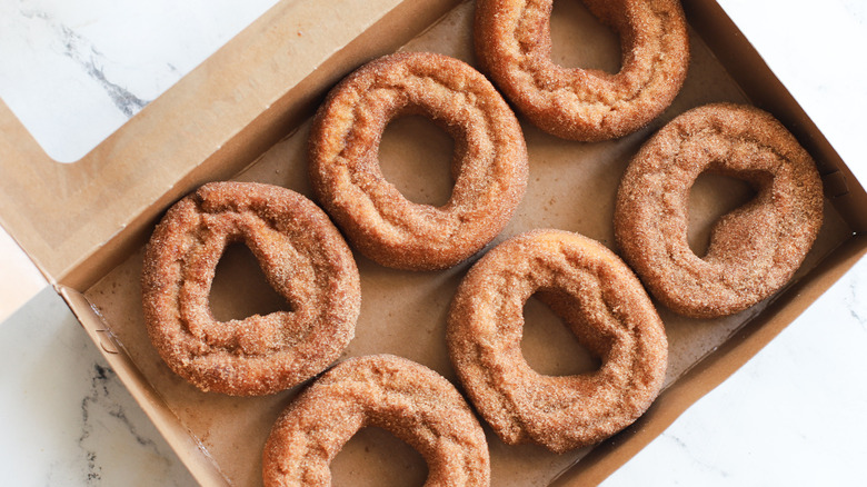 One of the most amazing parts about fall is going out to the apple orchard, picking apples, and buying lots of yummy apple treats. The best of these treats is undoubtedly the apple cider donuts, which are available at virtually every apple orchard across the nation come fall. These donuts are dense and crumbly, with a fine cinnamon sugar coating. If you don't have access to an apple orchard or just don't feel like making the drive, your local Trader Joe's offers a six-pack of delicious apple cider donuts that rival even the best of the orchard's offerings.