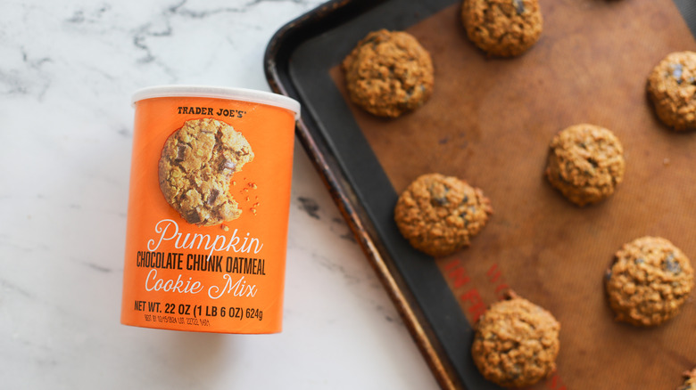 There's nothing like getting cozy on a cool autumn day and whipping up a batch of warm cookies to enjoy with your favorite movie. Handy baking kits like this Pumpkin Chocolate Chunk Oatmeal Cookie mix from Trader Joe's fits the bill perfectly. You can whip up a nice treat without having to measure out a ton of ingredients. All you have to do is add in a couple eggs and some softened butter, then scoop and bake. This cookie mix makes 24 cookies, depending on the size, so you'll have plenty to enjoy and some to share.