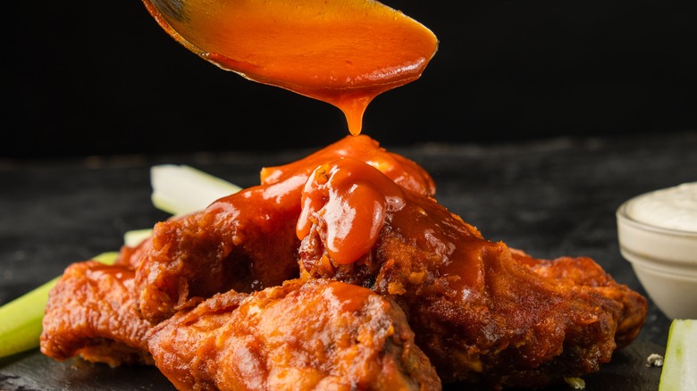 Traditionally used to coat the well-known Buffalo wings, the fatty and finger-staining Buffalo sauce is made using Louisiana-style sauce and butter. According to Time, the sauce was invented in 1964 by Teressa Bellissimo, who owned the Anchor Bar in Buffalo, together with her husband, Frank. She used her signature sauce, made with melted butter, hot sauce, and red pepper, to coat chicken wings, which were already deep fried, and served them with blue cheese and celery. In time, Frank's RedHot has become an iconic ingredient for Buffalo sauce.