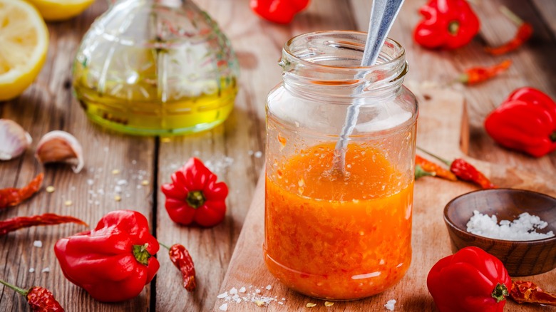 According to Pepper Scale, archaeologists found proof that peppers were consumed around 7000 B.C. Made with hot peppers, hot sauces have fascinated humanity's taste buds for thousands of years. Today, there are literally thousands of hot sauce varieties. Using countless chili types, hot sauces vary in levels of heat, flavors, consistency, and color. According to the region of the world, hot sauces share certain characteristics. For instance, South American hot sauces can share a coriander flavor, while Caribbean hot sauces are sometimes combined with tropical fruit (per Chili Workshop). Whether you're seeking subtle sweetness or the bursting flavors of umami or earthy peanuts, there is always something to enjoy in a hot sauce.