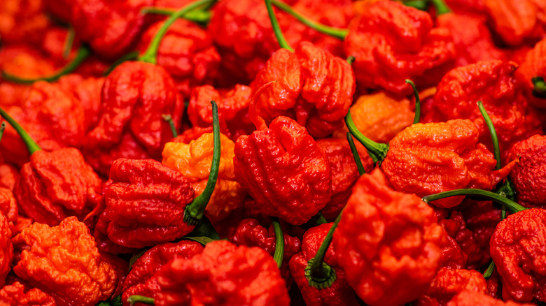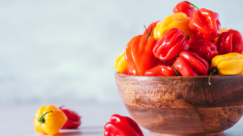 A type of hot pepper native to the Caribbean, the scotch bonnet pepper is spicy, similar to habanero in terms of heat (via Pepper Scale). Unlike the habanero, it has a sweet, tropical flavor. The taste is reminiscent of tomatoes but also apples and cherries. As with other chilies, the flavor and the heat will depend on the climate and soil where the plant grows. According to Forbes, the scotch bonnet pepper is so representative of Caribbean cooking that the increased demand for local products has led to a shortage of raw pepper, the main ingredient used in Caribbean sauces.