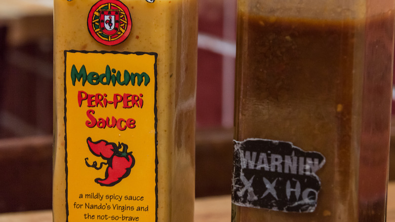 The best-known peri-peri bottled sauce brand is Nando's, which uses chilies grown in Mozambique to produce the sauce. It is flavored with lemon, garlic, smoked paprika, cilantro, basil, and vinegar to give it its unmistakable flavor. It pairs excellently with chicken and seafood, but it's also great on avocado toast, scrambled eggs, or roasted vegetables. The original piri-piri chicken recipe requires the chicken to be marinated in the sauce for 24 hours and then grilled so that the flavor really engulfs the meat.