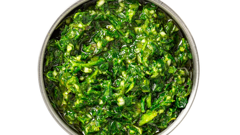 A staple dish in the Middle East, schug is the go-to sauce for many local dishes in Israel or Yemen. It is a fresh green pepper sauce that differs in color from most hot sauces, which are usually red, orange, or yellow. The original schug recipe calls for fresh green chilies (20 serrano chilies), garlic, parsley, cilantro, and lemon juice. But modern culinary creativity called for certain additions to the ingredients, so that different restaurants and different chefs now offer upgraded schug versions.