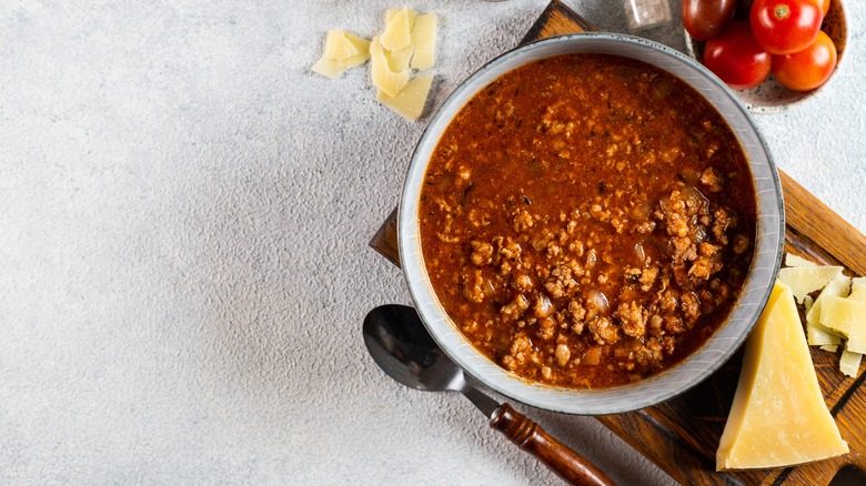 If you frequent Italian restaurants, you've likely tried ragù alla Bolognese. The tomato-based pasta is beloved in both Italian and Italian-American cuisine. It's a palatable and versatile dish, typically featuring pappardelle or tagliatelle. Because many Bolognese recipes also call for the use of milk, the sauce achieves a creamy consistency that perfectly balances with the texture of chopped meat.