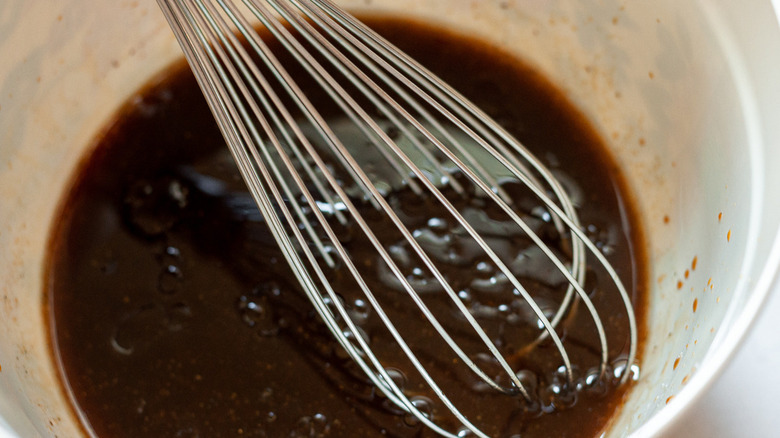 While you can serve the flavorful sauce with the meat you just marinated, there are plenty of other uses for it as well. Consider spooning this umami-packed condiment over grilled veggies like mushrooms, asparagus, or peppers. The soy, balsamic, Worcestershire, lemon juice, and cayenne mixture offers a burst of flavor to take a simple side veggie to a greater culinary level. Meanwhile, if you're serving your steak with a starchy side like rice or mashed potatoes, a drizzle of this tasty sauce is sure to tie the whole dish together. Alternatively, if you're a tofu lover who eats meat, this savory sauce will add a delicious layer of flavor to the soy protein. Of course, you could always just mop it up with a piece of good crusty bread.