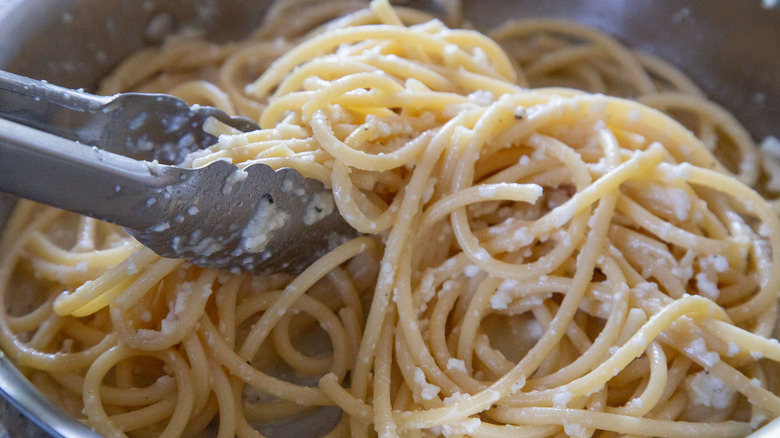 Fine Italian dining is right at your fingertips, thanks to this classic cacio e pepe recipe. If you are a pasta lover or simply a lover of Italian cuisine, then you've likely heard of cacio e pepe, which means "cheese and pepper." According to Foodicles, this is one of the oldest dishes in Italy, and there's a reason why it's been around for so long — it's easy to make, and it's delicious. Cacio e Pepe is filled with cheese, specifically, the pecorino Romano, which adds a lot of flavor to the pasta. Add a little grated Parmigiano Reggiano, and it's a cheesy pasta party.