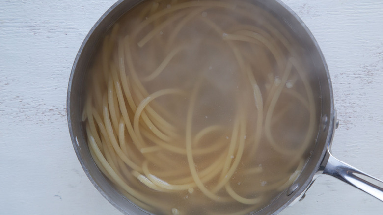 - 8 oz uncooked bucatini (or spaghetti)