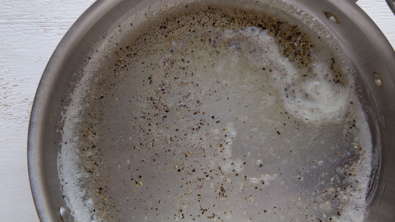 While you are waiting for the water to boil, take out a large skillet and place it on your burner. Turn the heat to medium and toss in the butter. Once the butter melts, you can add the freshly ground pepper and cook for 30 seconds. "The other key to this dish is blooming the pepper in the hot butter," Shungu shares. "It releases the flavors of the freshly ground black pepper and really makes it pop."