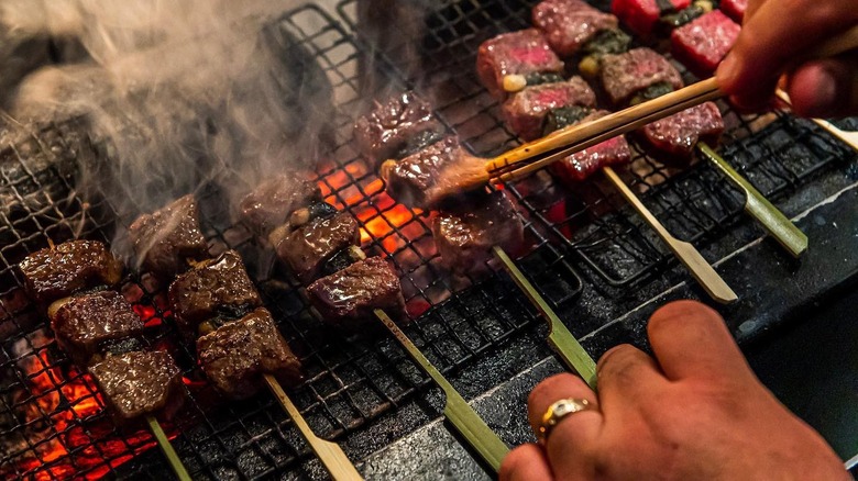 There is no greater prize amongst meat-eaters than Japanese wagyu beef, although it turns out the term 'Japanese wagyu beef' is utterly redundant. According to the American Wagyu Association, 'wa' means 'Japanese,' and 'gyu' means 'cow.' Nevertheless, the distinction is still important because other wagyu variants are available from different countries. The original and authentic wagyu refers to cattle breeds native to Japan, where there are strict regulations in place to maintain certain genetic traits within the species. Food & Wine elaborates on the diversity of Wagyu cattle, noting that there are different breeds in different regions of Japan, the most famous being Kobe beef from the Hyōgo prefecture, home to the city of Kobe.