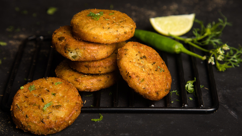 Indian kebabs aren't limited to preparation over an open fire but also to tawas — large frying pans similar to a wok, via The Spruce Eats. Famed in Lucknow, minced meat is combined with aromatics and shallow fried in ghee. India Times describes the result as a tender, flavourful patty unique to the region.