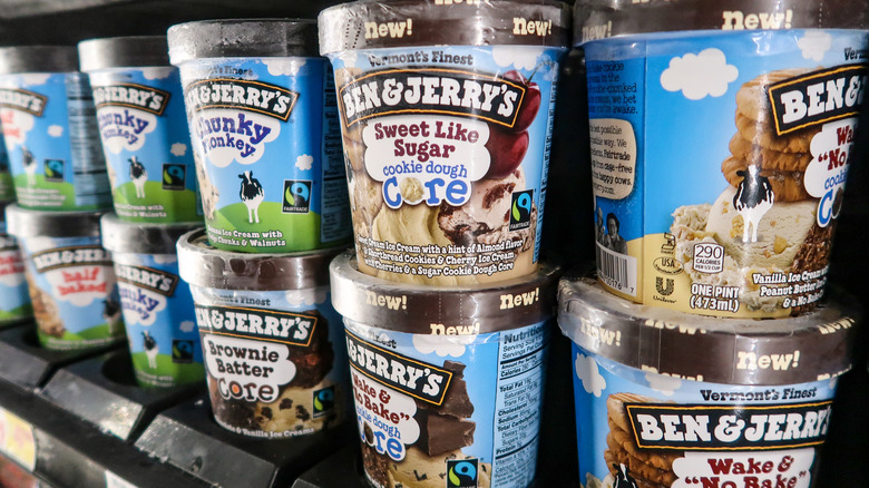 Known for its wild and wacky flavors, Ben & Jerry's has become a worldwide ice cream brand after its humble beginnings in 1978. Opening up shop in Burlington, Vermont in a renovated gas station, the company has been striving since the '80s to be shocking by creating the world's largest sundae in 1983 or by debuting their cowmobile, a renovated mobile home, which was used to give out free scoops of ice cream around the United States (per Ben & Jerry's). Given these beginnings, it comes as no surprise that Ben & Jerry's flavors and collaborations have gotten even more eccentric over time.