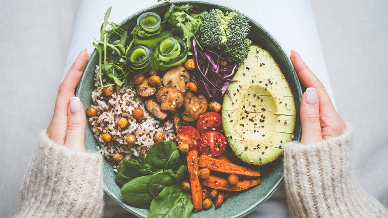 Some people follow a vegetarian diet for ethical or environmental reasons, however there are proven health benefits. By eliminating meat, dietary intake of saturated fat lowers while vitamins, minerals, folic acid, and phytochemicals increase, which lowers bad cholesterol and blood pressure (via Harvard Health Publishing). Plant-based diets may even lower you risk of developing certain cancers.