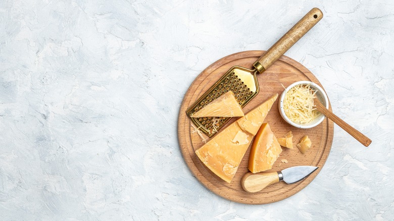 The inside of cheeses with natural rinds will typically be firmer, and examples include Parmigiano-Reggiano, French-style tommes, as well as Stilton, according to Spruce Eats. While natural rinds are technically edible, due to their thickness, you may want to leave them be. You shouldn't throw away your parmesan cheese rinds, though, because they can be tossed into sauces or soups to add umami and a hint of saltiness, per Food Hacks.