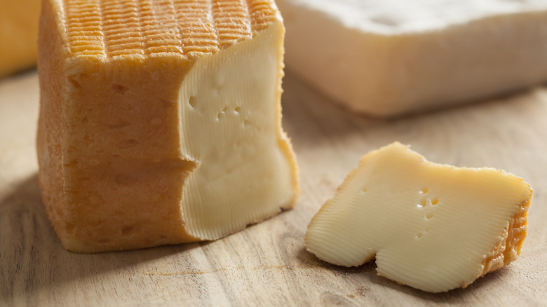 Because of the brine's strong flavors, cheeses with washed rinds are more potent compared to those with other types of rinds, according to Spruce Eats. If you're looking to add these bold flavors to your next cheese and charcuterie board, look for Munster, Gruyère, taleggio, or Limburger cheese at the grocery store or a local specialty cheese shop (via MasterClass).