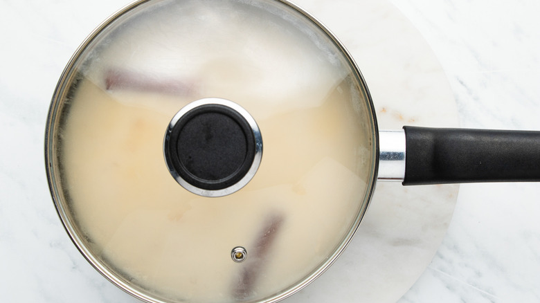 - Remove the pan from the heat, cover, and leave to infuse for 30 minutes.