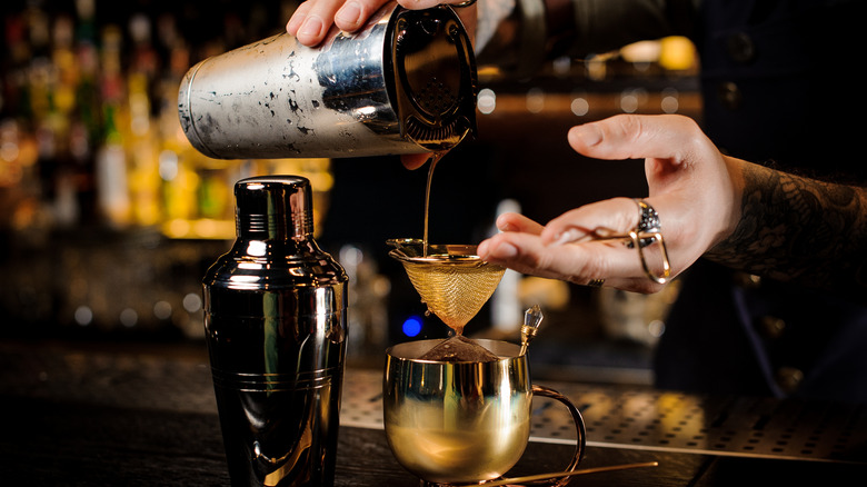 A Widow's Kiss cocktail — the name alone stirs intrigue. Throughout this libation's enduring history, the recipe has changed, but the name has stayed the same. First listed in 1895 in Modern American Drinks, the recipe called for French liqueurs shaken with apple brandy (per Imbibe Magazine). The flavor was herbal, with refreshing notes of fruit and eucalyptus, as described by Difford's Guide. Chartreuse, Bénédictine, and Angostura bitters were used to make the original cocktail until bartenders of the "Cocktail Renaissance" began to add their own spin to the drink (via Punch Drink).