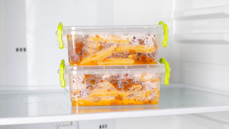 It is also perfectly safe to freeze soups, stews, and casseroles containing cooked meat. Avoid freezing dishes containing prepared dishes that contained raw meat. Portioning out cooked dishes can both reduce the time needed to freeze and make reheating easier. Casseroles containing cooked meat can be stored for up to three months, according to experts at Michigan State University. Keep in mind that you probably shouldn't freeze casseroles with dairy, as the freezing process will break any dairy-based emulsion.