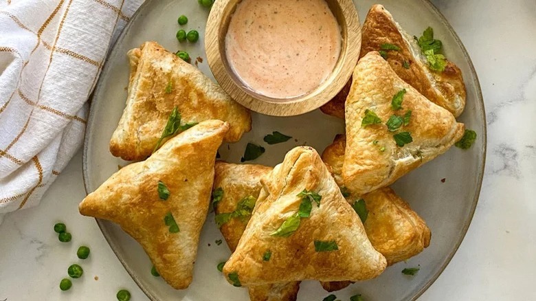 Who can say no to a deep-fried pastry filled with a savory mix of potatoes, peas, onions, and garlic, jazzed up with Indian spices? While there is something to be said about original samosas, this version is air fried, which means you get the same goodness for fewer calories, and it makes use of a premade crust, which means you get the same taste sensation with much less effort.