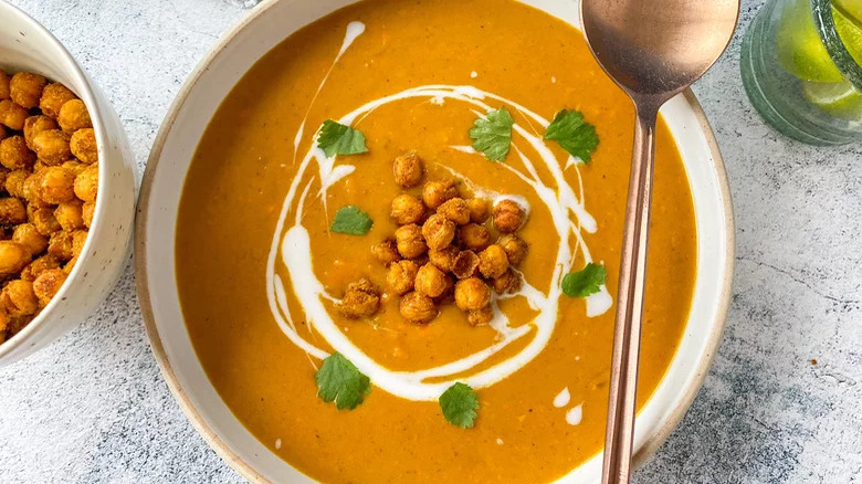 This might not be a textbook, traditional Indian soup, but its tradition-inspired flavors are sure to hit all the right notes with Indian food fans who are looking for something thick and hearty. The use of turmeric brings out the rich fall color of the sweet potato, and its spice blend makes this the perfect soup for the cooler days and nights. Best when served with Indian bread, like naan or a roti.