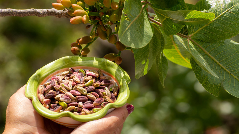 Pistachios are a well-beloved nut in the United States, which is great because the country produces a lot of them. According to Statista, in 2021/2022, the U.S. was responsible for 67% of worldwide pistachio production, making America the global leader in pistachio production. If you're thinking, based on these numbers, that you should have encountered many more pistachio trees by now, then you don't spend a lot of time in California, where pistachios are grown en masse, per Food Print.