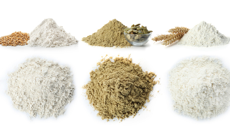 For example, wheat flour contains anywhere from 70-75% starch, according to the National Library of Medicine. Within that range, however, starch content differs depending on the specific wheat cultivars used and the type of flour they're being used for. Generally, wheat-based bread flour contains the least amount of starch and the most protein, while wheat-based cake flour contains the most starch and the least protein, according to registered dietitian Robert Larson Duyff, via Food & Nutrition Magazine. Accordingly, bread flour delivers a chewier, resilient bite, whereas cake flour delivers a more tender crumb. Non-wheat flours vary considerably in their starch content. Rice flour is among the highest, according to Duyff, while almond flour is one of the lowest. Learn more about this in our guide to all the flours.