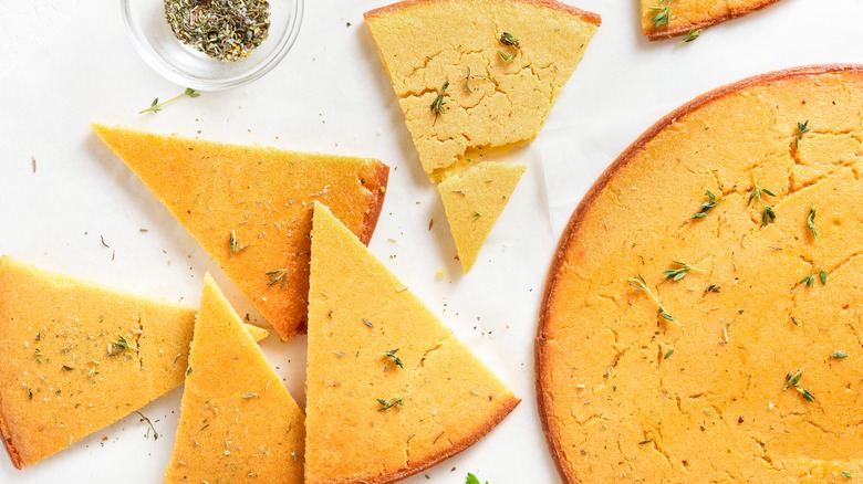 Cade is another chickpea snack variant found in Provence; however, the consistency is less crispy, thicker, and more moist and chewy. Hailing from Toulon, cade was made from corn flour originally and dates back to 1860, per Beyond. It's available at the market in La-Seyne-sur-Mer, where locals usually place orders in advance. In recent years, a sweet option has become available, where sugar is sprinkled directly onto the cade for enjoyment while browsing the fresh fruit, flowers, and sights of a French market.