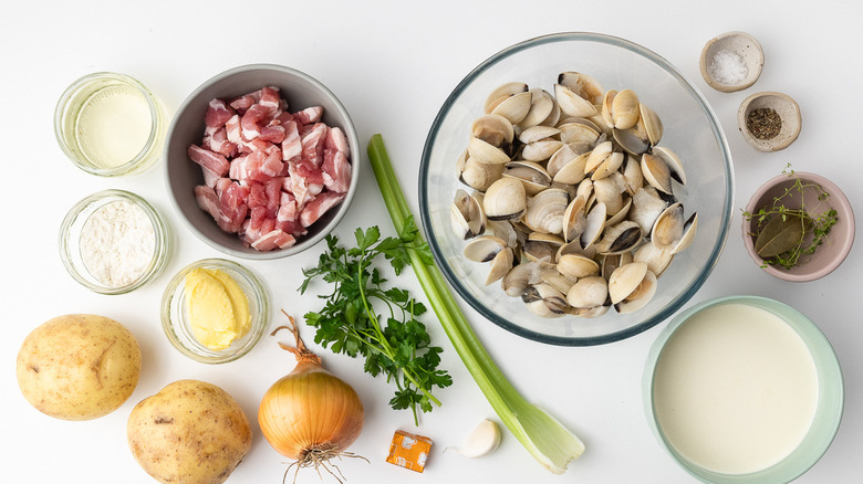 Assemble the ingredients for this New England clam chowder