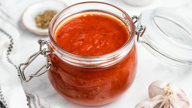 Some people snatch up their favorite brand of tomato sauce at the grocery just to save time. But believe it or not, making sauce doesn't have to be time-consuming or super-complicated. As the title suggests, this homemade tomato sauce recipe is quick and easy to make, and it requires just a handful of ingredients, making it affordable as well. We've steadfastly abide by the motto "homemade is better than store-bought," and that's precisely the case with this tomato sauce. And if you want to make it ahead of time? It lasts up to five days in the fridge, so it's really a no-brainer in terms of food prep, too.
