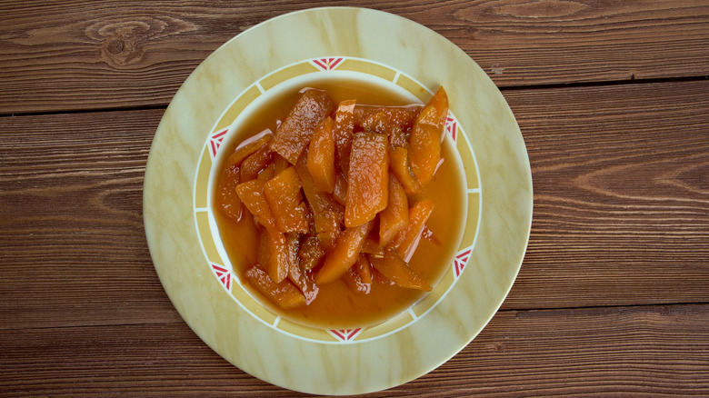 There is no wrong way to serve Calabaza en Tacha. Sometimes it is served doused in thick syrup, while others prefer to eat it dryer, according to Mexico in my Kitchen. Condensed milk or cajeta can also be drizzled over, with pecans and pine nuts on top (via Maricruz Avalos). The time of day this dish is consumed can also vary. While this dish is a dessert, some people in Mexico eat it for breakfast, along with a cold glass of milk (via Mexico in my Kitchen).