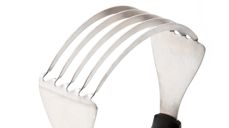 A pastry cutter goes by many different names: manual dough mixer, hand blender, and pastry blender. Whatever you call it, this tool is vital to adding tiny pieces of butter to your perfect crisp topping. Keeping the butter cold is one of the ways to get a better coarse topping on your apple crisp. Remember, you should never beat cold butter with a mixer because it can actually warp a balloon whisk or beater attachment. Instead, use a pastry cutter to break the cold butter into tiny pieces. If you don't have a pastry cutter handy, you can cut the cold butter with a fork, two butter knives, or a food processor into the flour, resulting in a similar texture to the pastry cutter. Outside of apple crisps, you can use the pastry cutter to make a basic pie crust by hand as well.