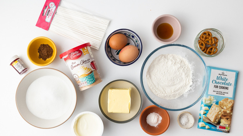 While most cake pop recipes make use of leftover cake crumbs, Rye starts with a fresh-baked cake in the ever-popular pumpkin spice flavor. She says the cake itself resembles "a proper spice cake," but the addition of the cream cheese frosting transforms the pops into something that tastes "almost exactly like a cinnamon roll." If you'd like to save yourself some of the work involved, however, and/or you've got leftover cake from your last baking project, Rye does say that "these cake pops could definitely be made with leftover cake." If you do go this route, you'll need about 4 cups of crumbs.