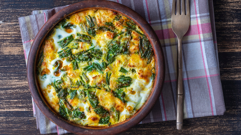 There is a clear difference in the taste and texture of a well-made frittata. They are custardy, creamy, and full of flavor. However, if it is not made correctly, it can be dry and spongy — and no one wants that (via Bon Appetit). When it comes to frittatas, dairy is the secret ingredient to bring your frittata from boring to unforgettable. The real question here is: Why?