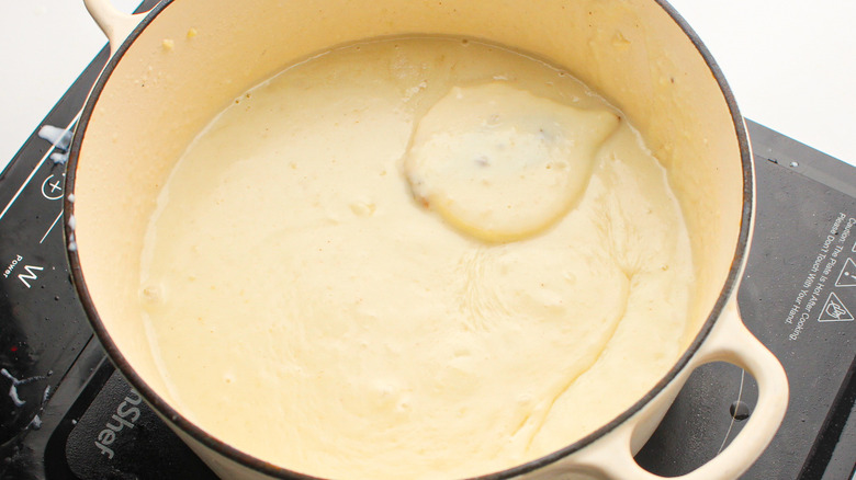 Now, put them together, and you get onion pique béchamel, of course! To help you understand the wonderful thing that said sauce really is, recipe developer Susan Olayinka of The Flexible Fridge says, "This sauce is rich and creamy, with a slight onion flavor. It's the perfect accompaniment to many different dishes." And depending on what dishes you're planning for dinner, she adds, "there are so many variations of this sauce! Try adding in different herbs or spices. You could also add in some shredded cheese, diced cooked bacon, or sautéed mushrooms. Get creative and make it your own!"