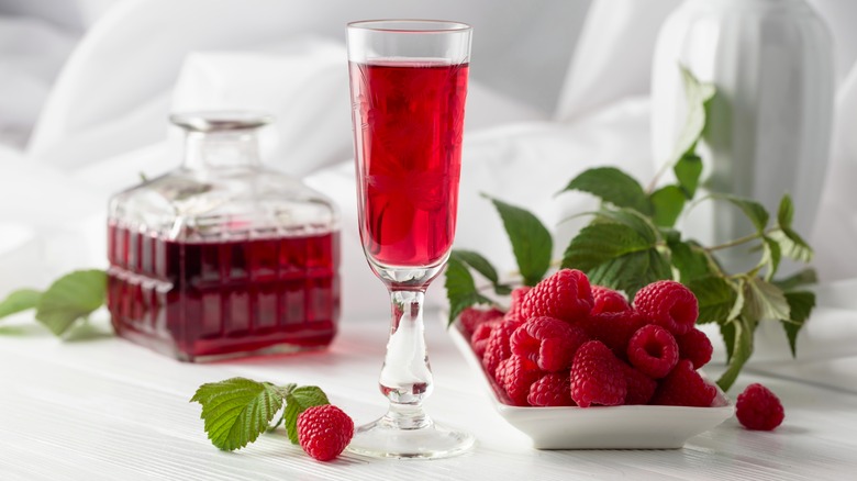 Framboise liqueur brings a whiff of raspberry to this brownie pudding