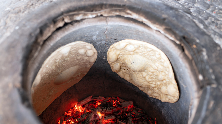 According to the Indian Express, naan is about 2,500 years old and uses yeast to create its characteristic bubbly appearance. To cook it, bakers will shape the dough and then slap it onto the walls of a clay oven called a tandoor. The bread puffs up in bubbles as it bakes. Seattle India Bistro explains that naan is essential to Indian cuisine because its mild taste balances out otherwise powerfully-flavored food. It is also used as an edible utensil to pull apart and eat, similar to Ethiopian injera bread. Naan can come in all kinds of flavors and is perfect for soaking up Kabocha curries and a variety of popular Indian dishes we know and love.