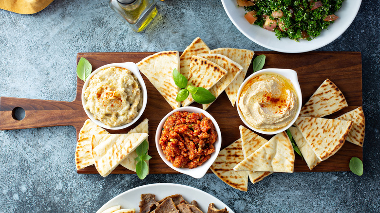 The Spruce Eats describes the pita (or pitta) as a leavened flatbread. Yep, a leavened flatbread ... sounds like an oxymoron, right? But pita is made from yeast, water, and flour and traditionally baked on stone. The water in the dough evaporates, causing the characteristic pocket to form in the pita bread, which allows you to pull it open and stuff it full of delicious food. There are various styles of pita. Some are flatter and used as wraps, others are mixed with spices and herbs before cooking, but all are baked off on high heat to ensure the pocket forms. In Mediterranean cuisine, it is common to stuff pita with meat, vegetables, or falafels to make a wrap for Palestinian shawarma or Greek gyros (via Eatpitapita).