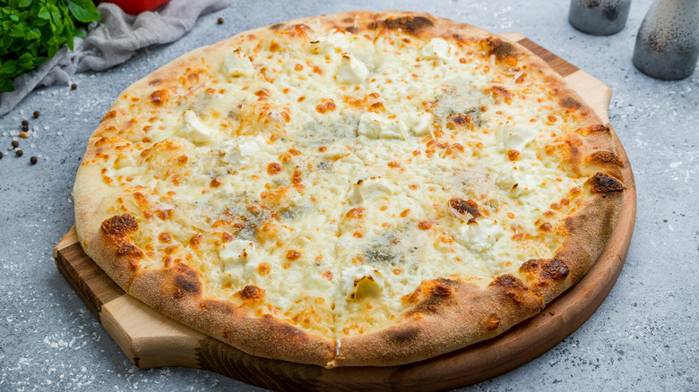 If you say yes to all things cheese, you're probably enthusiastic about a pizza that boasts four kinds of it. Although recipes vary, the standard quartet in an Italian pizzeria is mozzarella, Gorgonzola, fontina, and Parmesan, melted over the base with or without tomato sauce. It's certainly a loaded pie, and the flavor profile is equally broad depending on the type of cheese used. In any case, you're dealing with some pungent flavors, some that are mild and creamy, and others on the saltier end of the spectrum.
